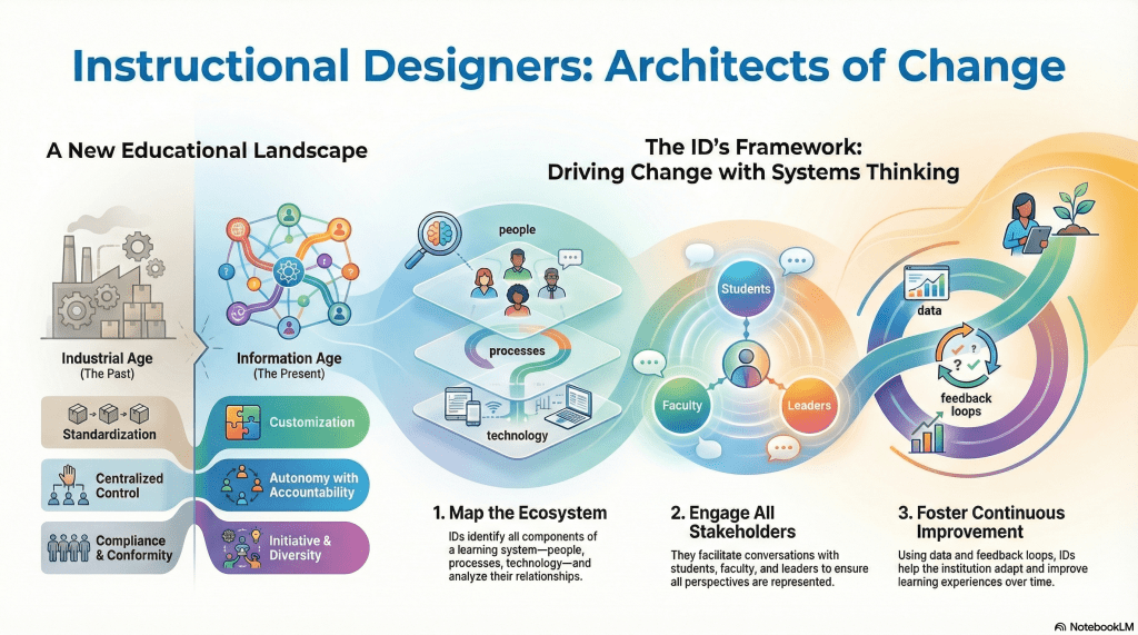 From this perspective, instructional design is less about producing perfect solutions and more about facilitating learning, adaptation, and improvement over time. Iteration, feedback loops, and long-term thinking are not signs of weakness—they are essential features of the work.
