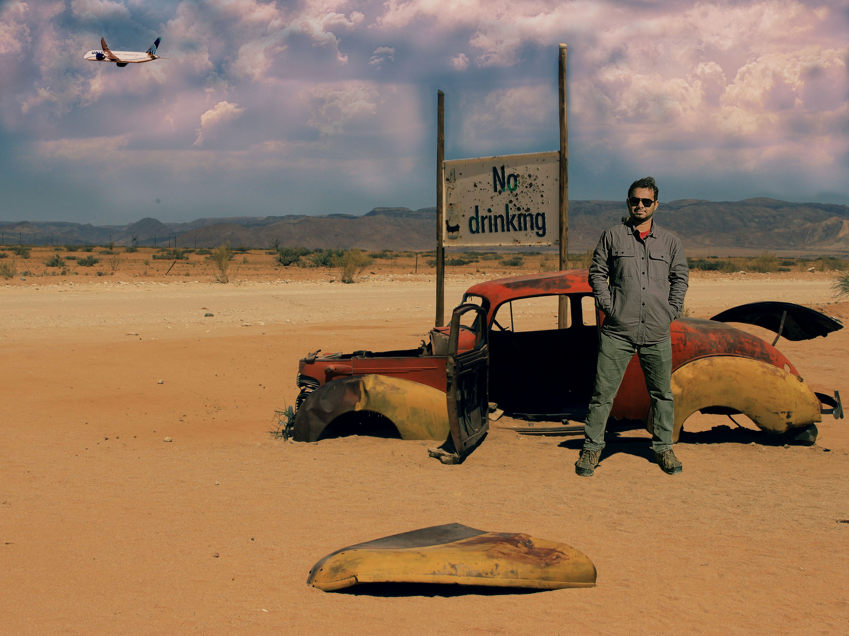 A cinematic desert montage created by compositing multiple image sources into a cohesive narrative scene through advanced color grading, lighting alignment, and environmental blending.